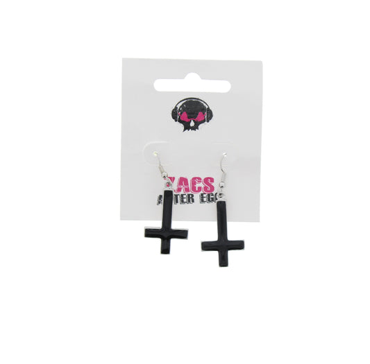 Upside Down Black Cross Earrings - 3.1 x 2.0cm