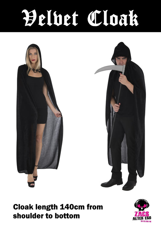 Unisex Fancy Dress Black Velvet Cloak Length 140cm