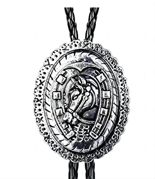 Vintage Horse Pendant PU Leather Cord Western Bolo Tie