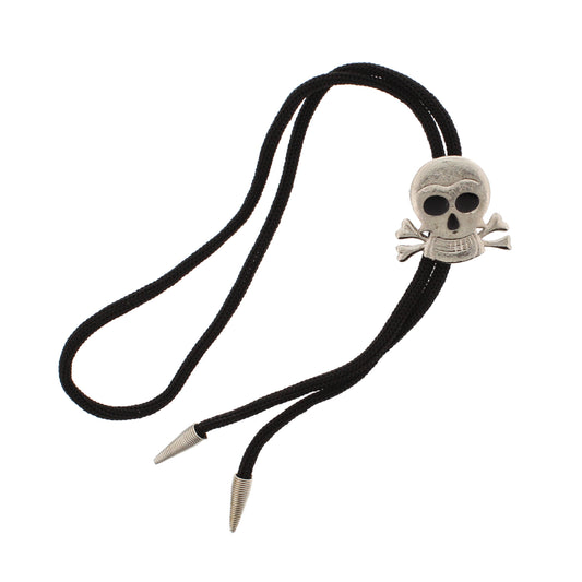 Vintage Grinning Skull & Crossbones with Black Eyes Western Bolo Tie