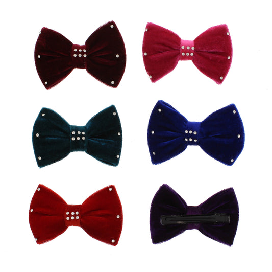 Velvet Bows with Rhinestones (Approx. 9 x 5.5cm)
