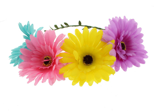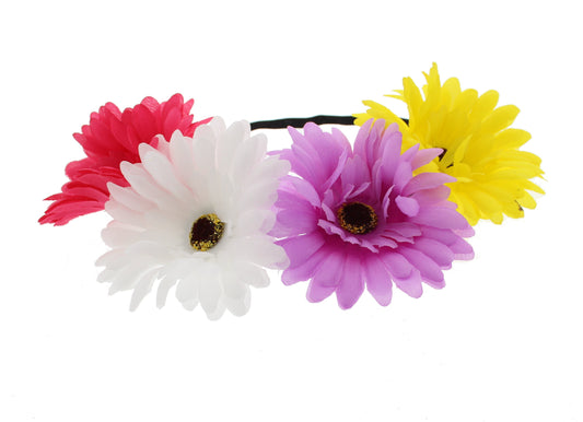 Very Large Multicolour Sunflowers on Black Braided Elasticated Hair Garland