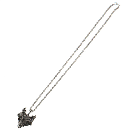 Viking Norse Wolf Pendant on Rhodium Metal Chain Necklace (3.8cm Diameter)