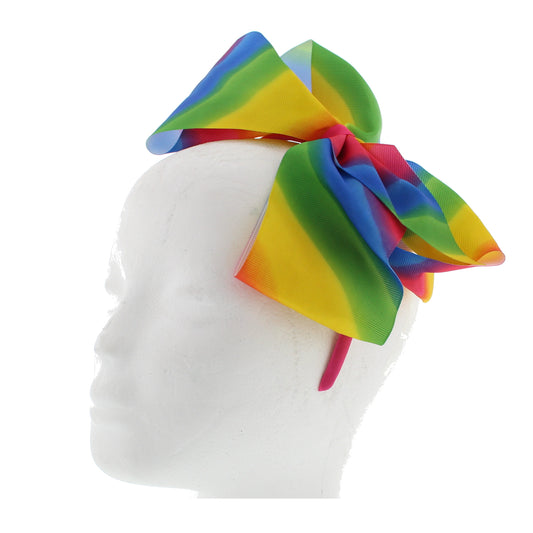 Very Large Bright Rainbow Jojo Style Ribbon Bows On Aliceband (23 x 18cm)
