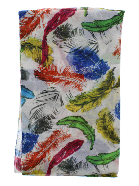 White Scarf with Multicolour Feathers