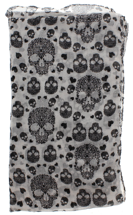White Multi Size Skull & Heart Print Scarf