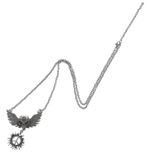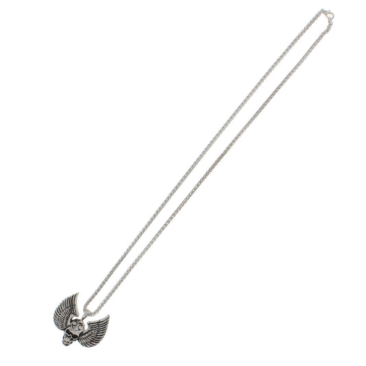 Winged Skull Pendant on Rhodium Metal Chain Necklace (4.3cm Diameter)