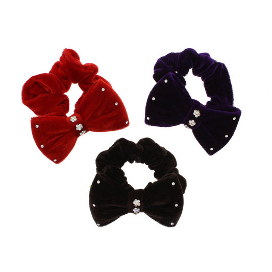Winter Colour Velvet Scrunchie with Bow & Rhinestones
