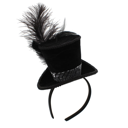 Black Top Hat Fascinator on Aliceband with Clockface & Feathers