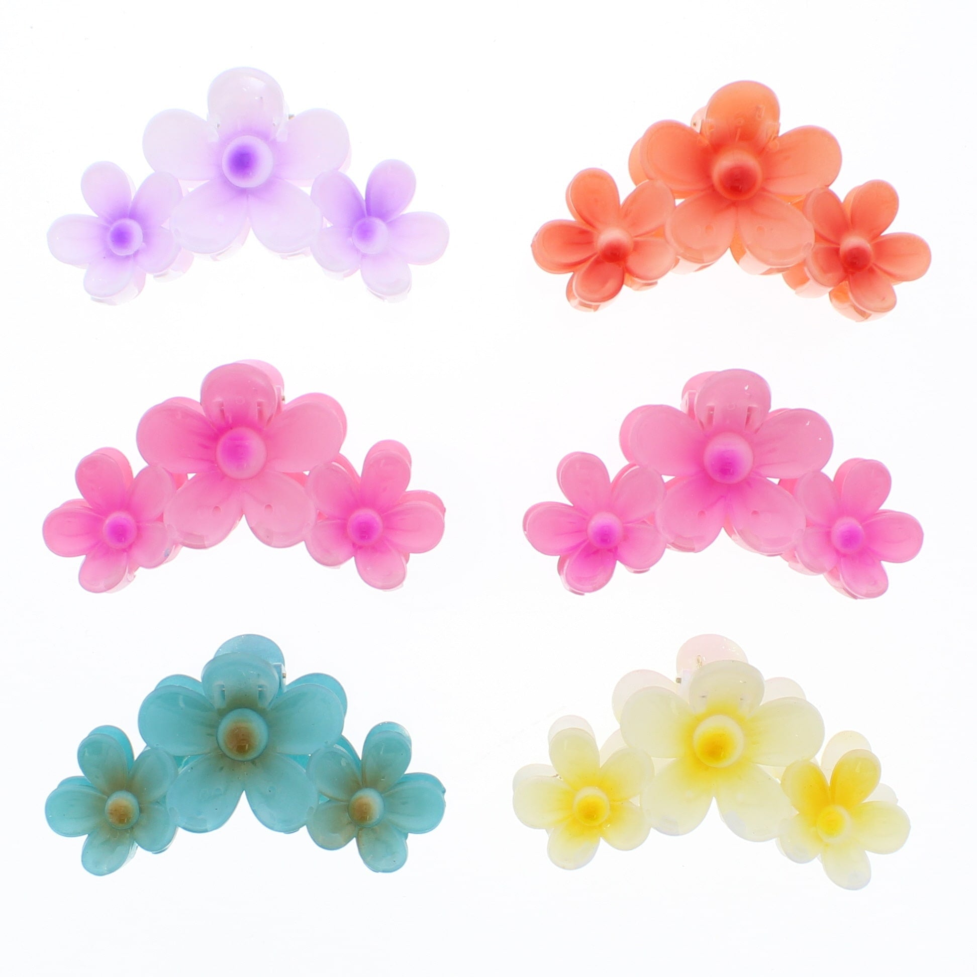 11cm Assorted Shiny Double Sided Daisy Triple Flower Hair Clamps