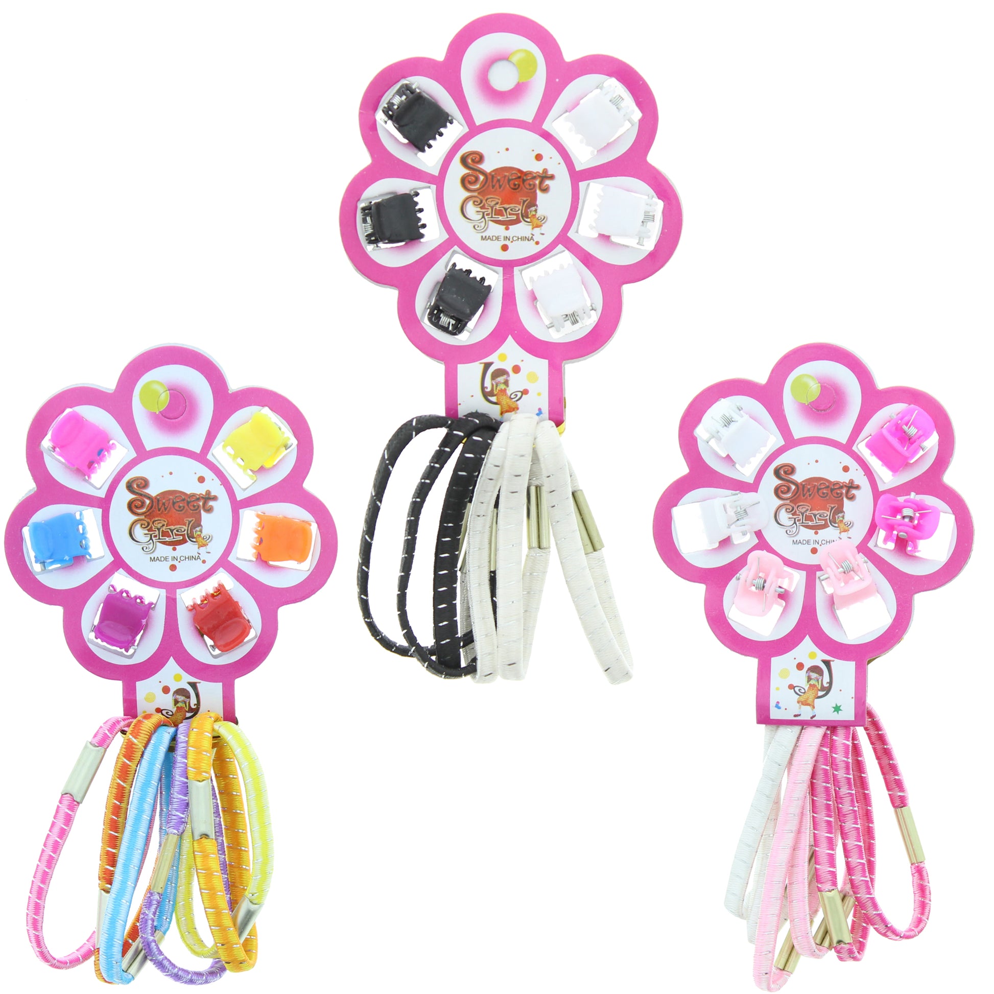 Assorted Colour 6 Mini Clips & 6 Hair Elastics Accessories Set