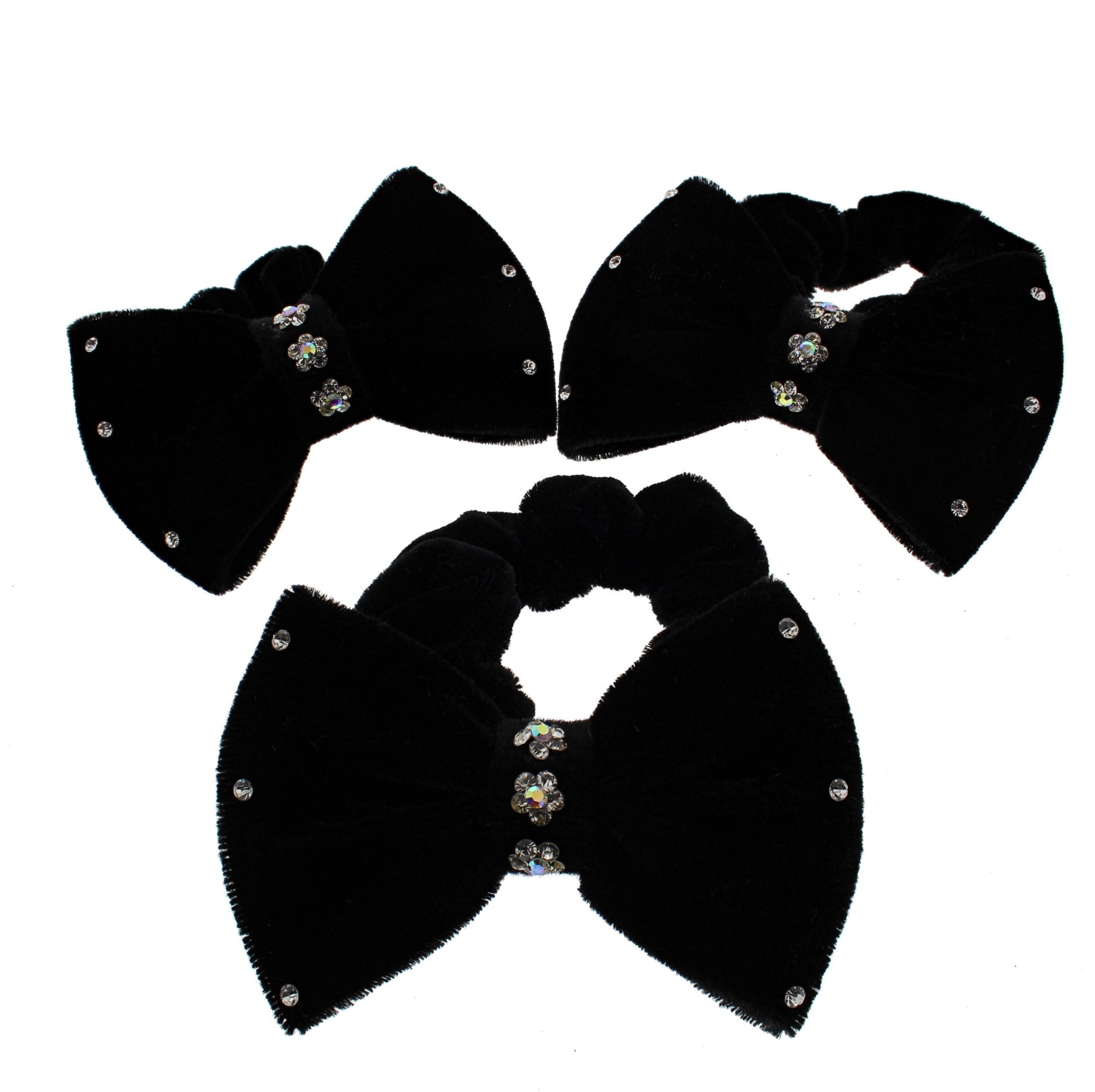 Winter Colour Velvet Scrunchie with Bow & Rhinestones